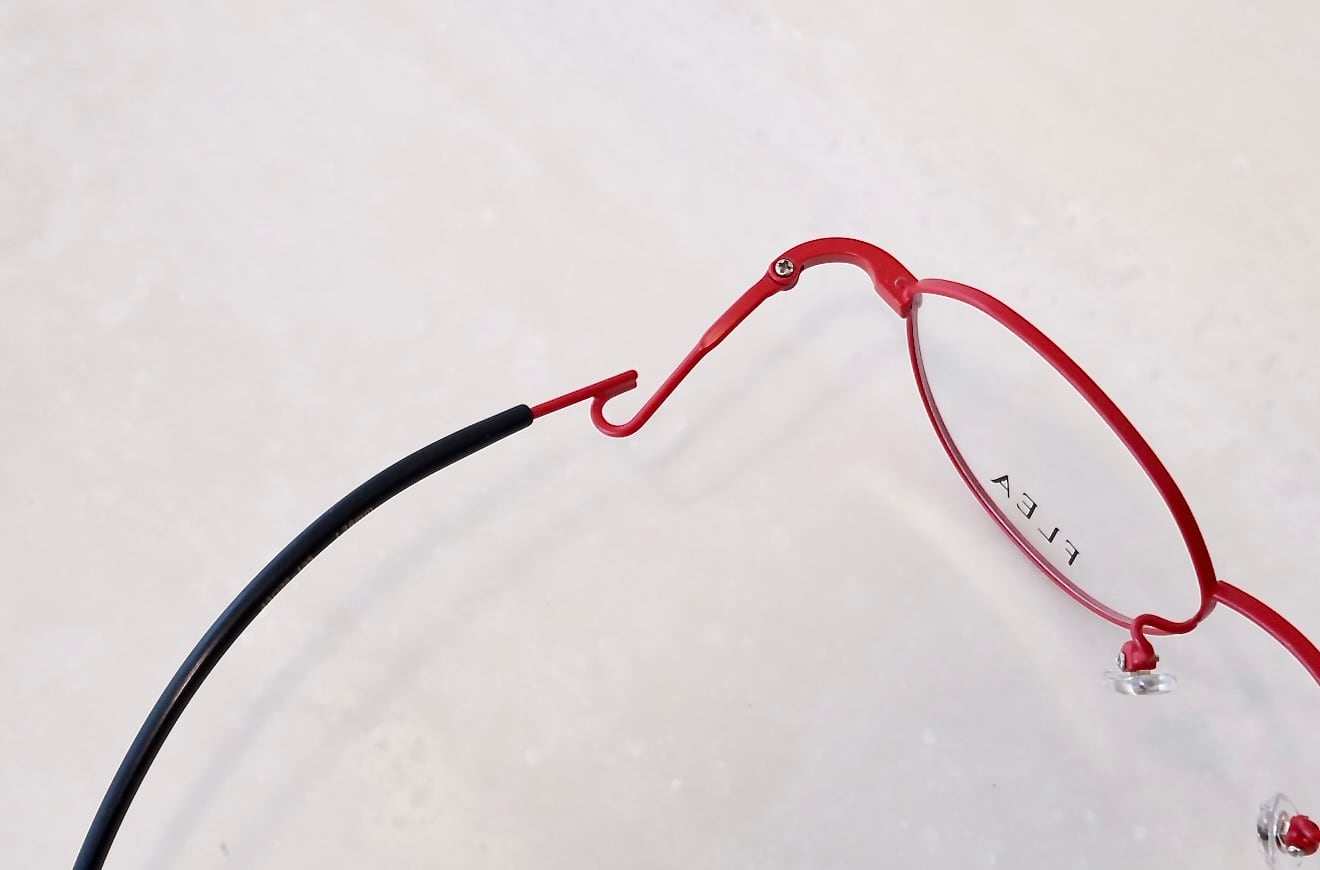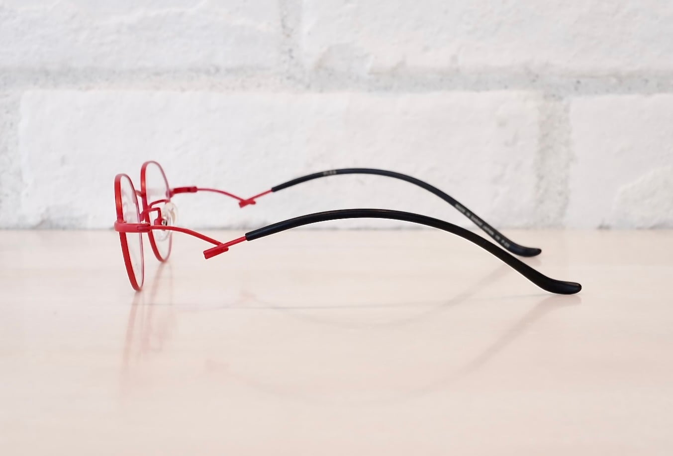 鯖江の職人の手曲げによって作り出される、大きくアーチを描くテンプルは、蚤(FLEA)のジャンプ軌跡から着想を得てデザインされており、見た目のユニークさと、ソフトな掛け心地を実現しました。もう一つの特徴であるカラーバリエーションと共に、そのフレームをお楽しみ下さい。