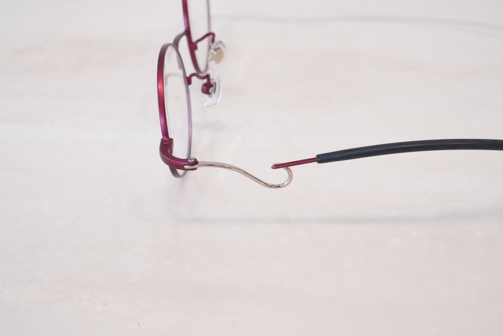 テンプルの釣り針状の部分はβチタンが使用され、ソフトな掛け心地を生み出しています。
