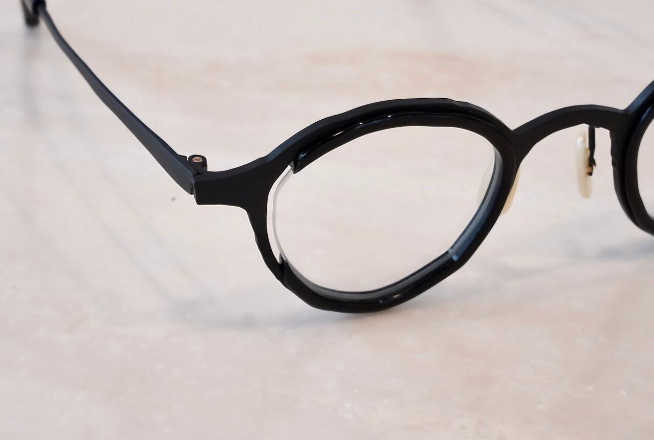 割れた陶磁器を美しく生まれ変わらせるKintsugiを眼鏡デザインに落とし込みました。Kintsugiのラインがフレームに新しい空間をもたらします。