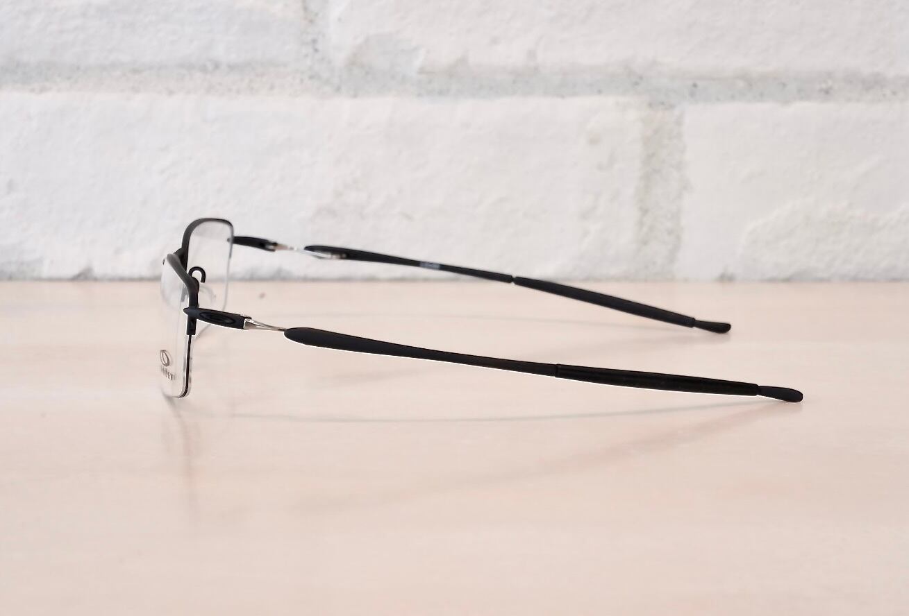 オークリーのワイヤー系と呼ばれる繊細なラインが特長。そのデザインとかけ心地を両立するために軽量で高い強度を持つチタン素材を使用。また、ヒンジ部分には、弾性の高いβチタンを採用。フロントは上半分は枠があり、下半分はナイロン線でつっているナイロール構造になっています。細部にまでこだわった設計は、オークリーだからこそのかけ心地を実現しています。