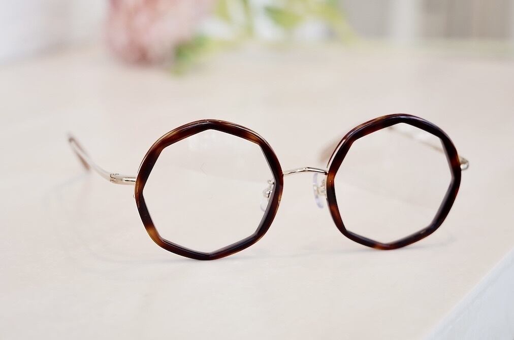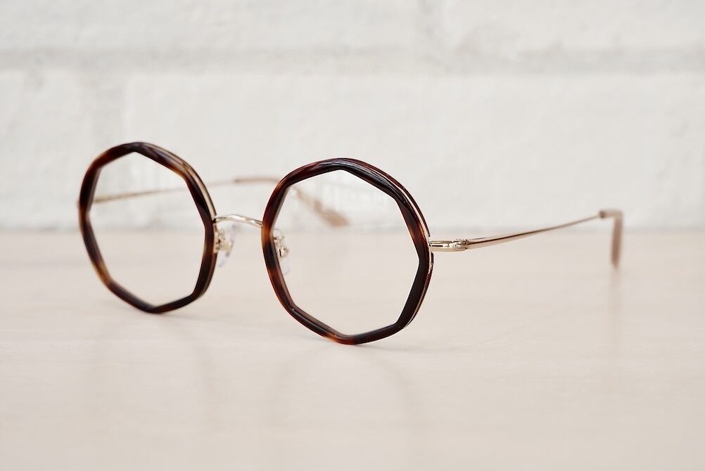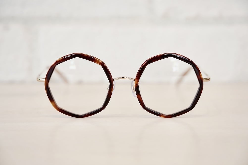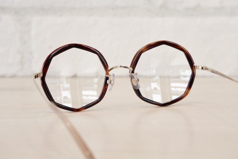 megane and meのアイコンモデルEDIE。8角形のレンズシェイプは特徴的でありながら掛けたときは自然となじむ洗練された形です。