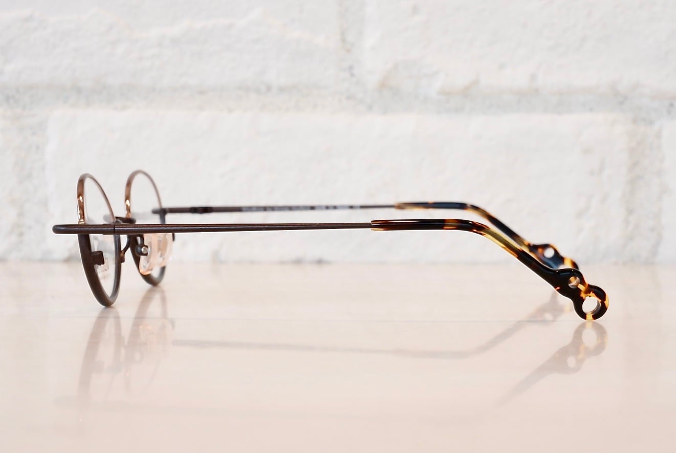 こちらのモデルはフロントリムの上部を細く、下部を太く、まるでアンダーリムフレームのように見えるデザインになっています。