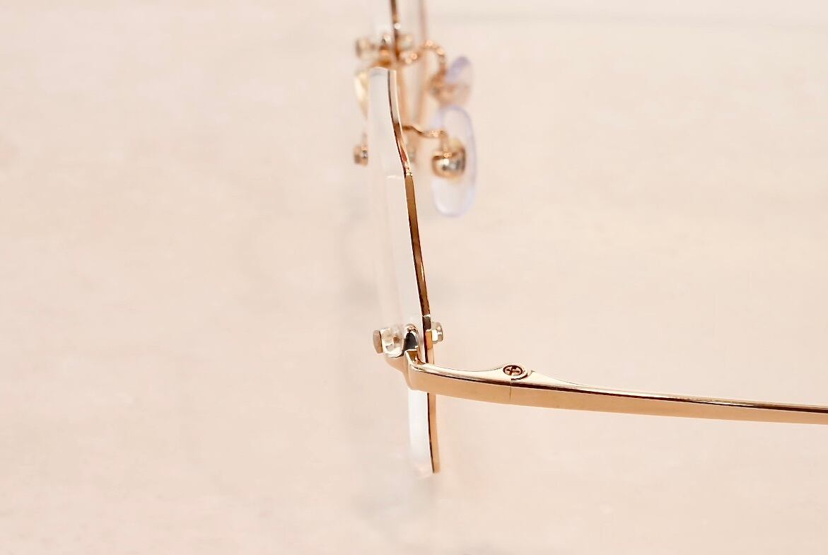 レンズ背面にメタル枠を配置し、一見フルリムにも見えるデザイン。